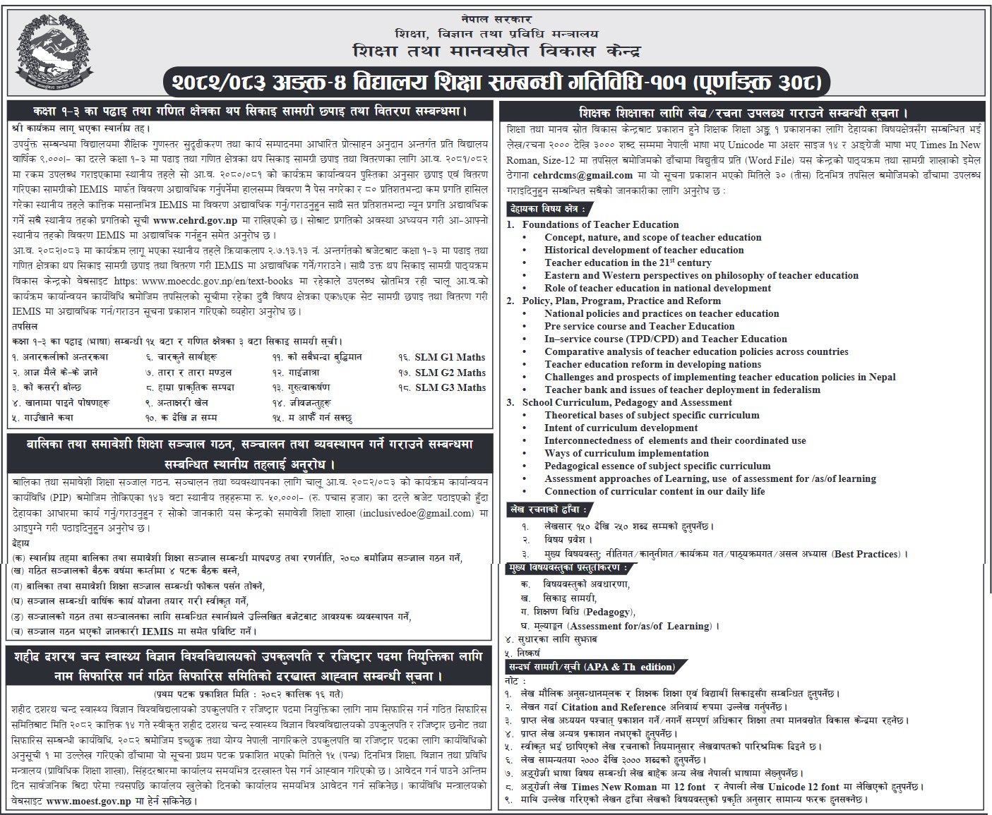 Schools must enter details of textbook demand and distribution in IEMIS by the end of Ashwin (First term), Poush (Second term), and Chaitra (Third term).